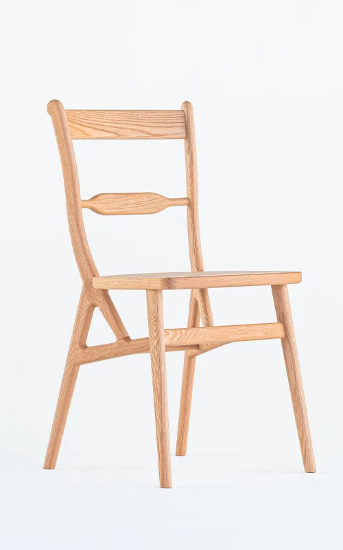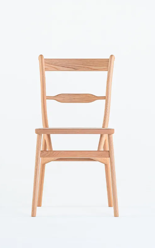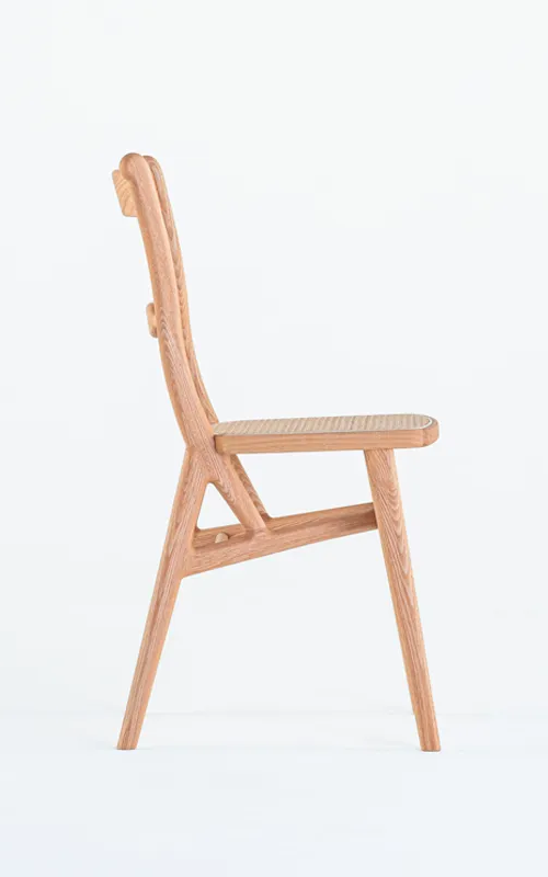 TLSB chair は、Triangular-Legged Scroll-Back の頭文字から取った名前で、背柱、貫、後脚を三角形に組んで、その上にラタン張りの座枠を固定する独自の構造を持ったスクロールバックチェアという意味です。効率的な材料取りと剛性の観点から考えられたこのオリジナルな構造によって更なる軽量化を実現し、片手で簡単に持ち上げられる扱い易い椅子に進化させています。構造自体を大胆に改変しながらも、セントラルステイやスクロールなどの原型の要素は引き継いで洗練させることで、クラッシックとモダン、西洋と東洋の融合を感じられるデザインになっています。小さな座面、カーブしたやや高めの背もたれ、独特のサイズ感を持った佇まいは、150 年の時を経た今でも新鮮に感じられます。TIME & STYLE 2025 Collection